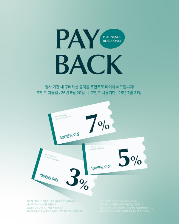 행사 기간 내 구매하신 금액을 포인트로 페이백 해드립니다!