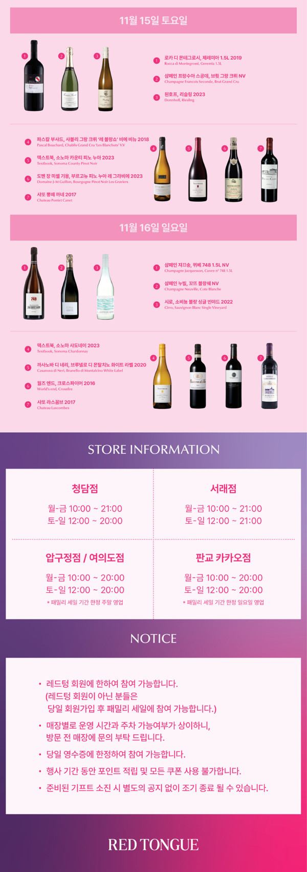 4. 프로모션 상품 및 RED TONGUE 정기 프로모션 행사 기간에는 포인트 적립이 불가합니다.