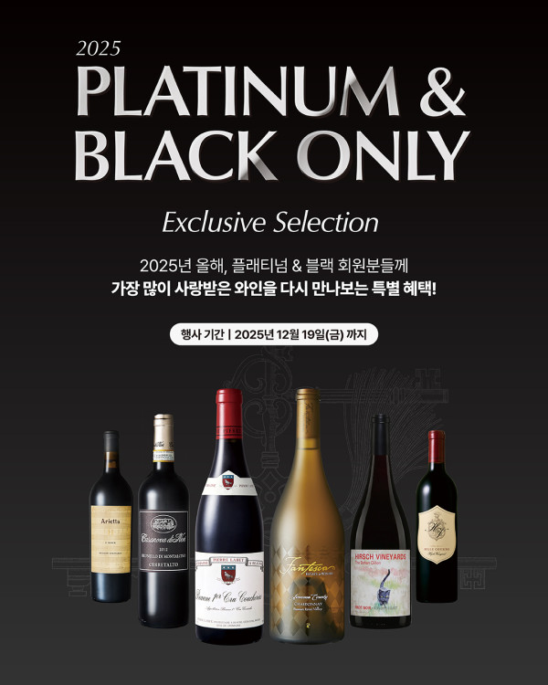 2025년 올해, 플래티넘&블랙 회원분들께 가장 많이 사랑받은 와인을 다시 만나보는 특별 혜택!
